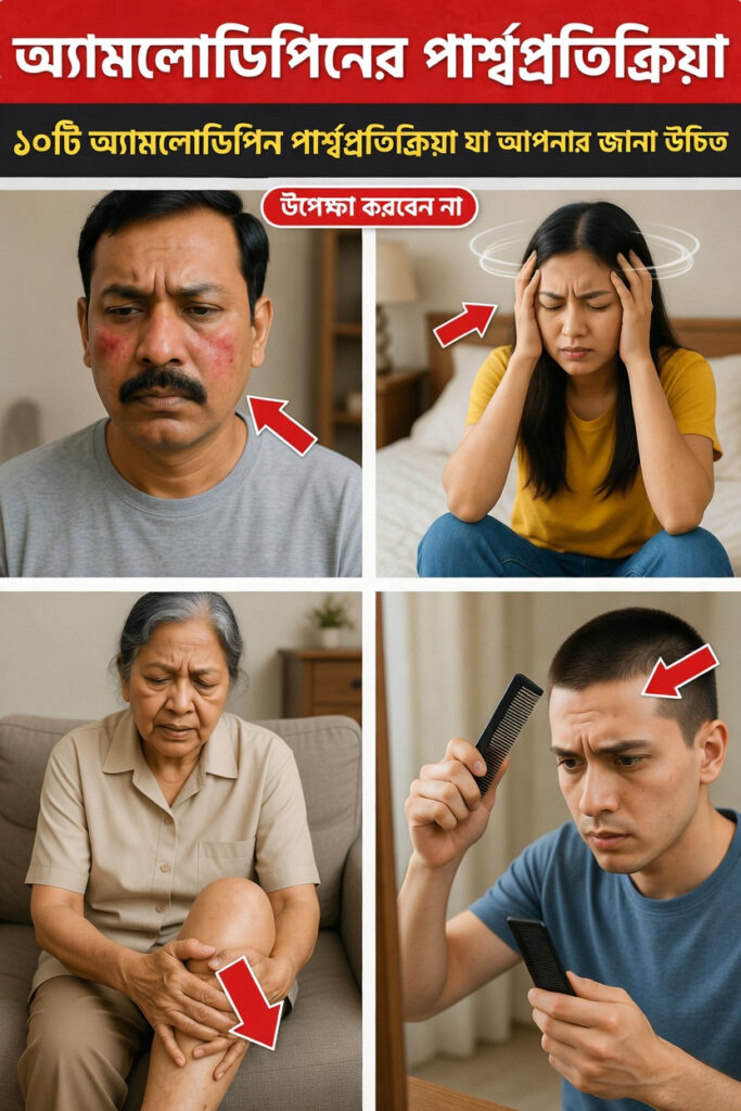 রক্তচাপ নিয়ন্ত্রণে অ্যামলোডিপিন খেলে যে পার্শ্বপ্রতিক্রিয়াগুলো দেখা দিতে পারে