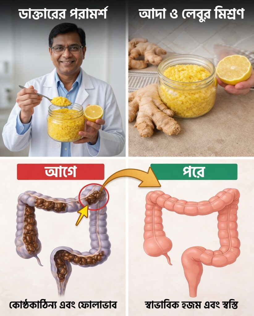 আদা অনেকের ক্ষেত্রে পাকস্থলী দ্রুত খালি হতে (gastric emptying) সহায়তা করতে পারে এবং অন্ত্রে অতিরিক্ত ফারমেন্টেশন কমাতে পারে—ফলে গ্যাস ও ফাঁপা কিছুটা কম অনুভূত হতে পারে। অন্যদিকে লেবু ও কুসুম গরম পানি মিলিয়ে হাইড্রেশন বাড়ে, যা বিশেষ করে পানিশূন্যতা থাকলে মলত্যাগের স্বাভাবিক গতি বজায় রাখতে সাহায্য করতে পারে।