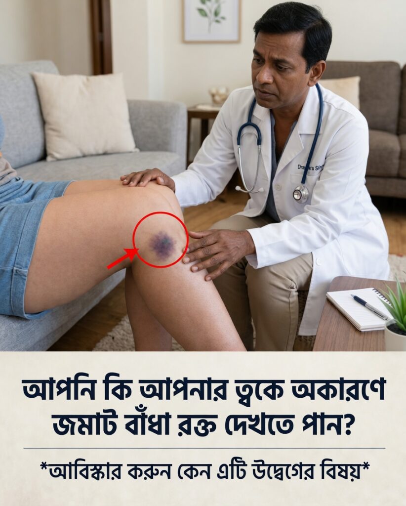 ঘুম থেকে উঠে দেখলেন হাত, পা বা দেহের অন্য অংশে ছোট ছোট বেগুনি বা গাঢ় দাগ। প্রথমে মনে হতে পারে, “সামান্য কালশিটে হবে।” কিন্তু কয়েক দিন পর আবার নতুন দাগ দেখা দিল—কোনও ধাক্কা, পড়ে যাওয়া বা আঘাত ছাড়াই। তখন বিষয়টি আর ততটা সাধারণ মনে হয় না। অনেকেই এগুলোকে উপেক্ষা করেন, অথচ কখনও কখনও এই দাগ শরীরের ভেতরের কোনও পরিবর্তনের ইঙ্গিত হতে পারে—যার দিকে নজর দেওয়া জরুরি।