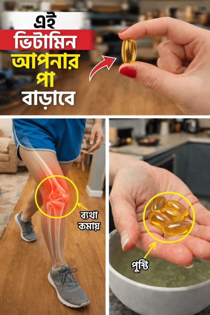 • ভিটামিন D → ক্যালসিয়াম ব্যবহার অপ্টিমাইজ করে হাড়কে মজবুত রাখে; কম মাত্রার সঙ্গে যুক্ত অনেক অস্বস্তি ও stiffness কমাতে সহায়ক হতে পারে।