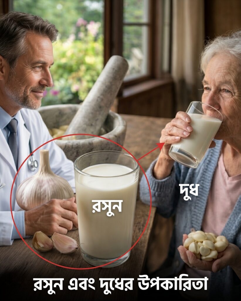 কিছু গবেষণায় দেখা যায়, রসুন নিয়মিত গ্রহণ করলে কোলেস্টেরল ও রক্তচাপ স্বাস্থ্যকর সীমায় রাখতে সহায়ক হতে পারে। দুধ থেকে পাওয়া ক্যালসিয়াম ও পটাশিয়ামও শরীরের গুরুত্বপূর্ণ খনিজ চাহিদা পূরণে ভূমিকা রাখে।