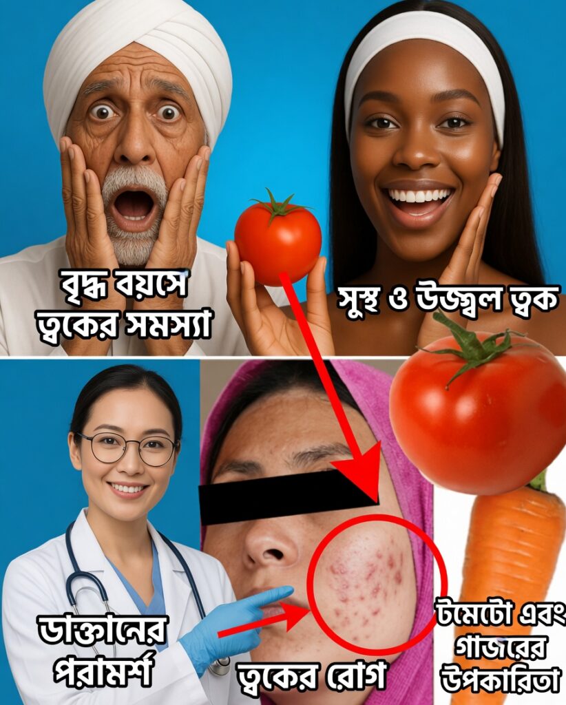৭০ পেরোনোর পর অনেকেরই মুখে গভীর বলিরেখা, দাগ-ছোপ এবং সারাক্ষণ ক্লান্তিভাব দেখা যায়। অনেকে এটিকে “স্বাভাবিক” বা অনিবার্য মনে করেন। কিন্তু বাস্তবে, এসব পরিবর্তনের একটি বড় অংশ অক্সিডেটিভ স্ট্রেস এবং প্রয়োজনীয় পুষ্টির ঘাটতির সঙ্গে সম্পর্কিত। এখানেই গাজর ও টমেটো প্রাকৃতিক সহায়ক হিসেবে কাজে আসে।