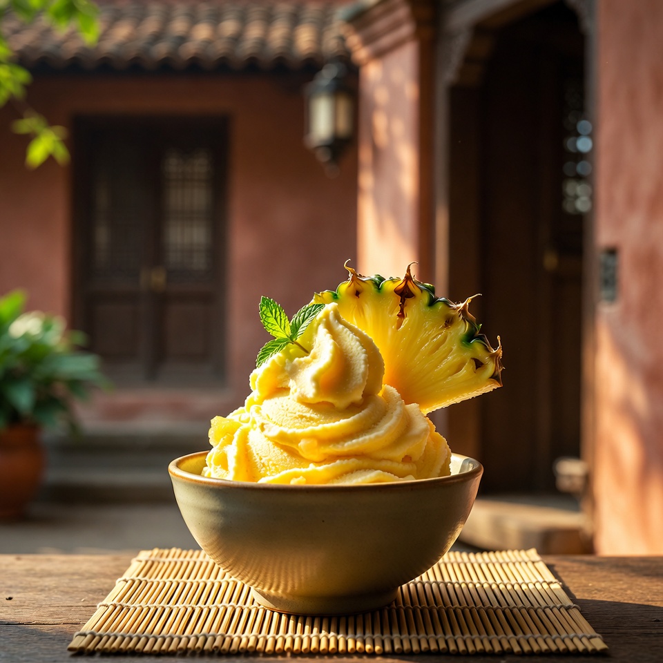 এই সহজ ও মজাদার ডেজার্টটি খুব অল্প উপকরণে তৈরি করা যায়। আনারসের স্বাদ, ক্রিমের মোলায়েম ভাব এবং হালকা মিষ্টত্ব মিলিয়ে এটি গরমের দিনে বিশেষভাবে উপভোগ্য। ব্লেন্ডারে সবকিছু একসঙ্গে মিশিয়ে ফ্রিজে জমিয়ে নিলেই তৈরি হয়ে যাবে একটি সুস্বাদু ঠান্ডা পরিবেশনযোগ্য মিষ্টান্ন।