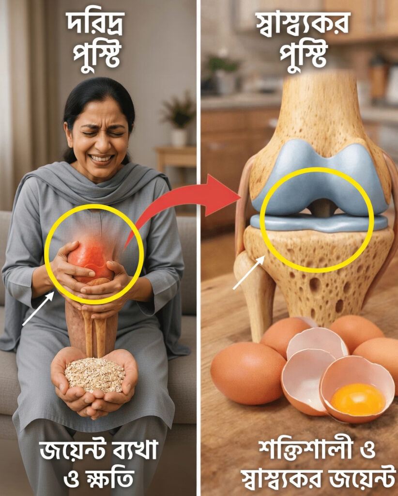 এই লেখা শুধুমাত্র তথ্য দেওয়ার উদ্দেশ্যে তৈরি। এটি চিকিৎসা-পরামর্শ নয়। ব্যক্তিগত পুষ্টি, হাড়ের স্বাস্থ্য বা জয়েন্টের সমস্যা সম্পর্কে সঠিক নির্দেশনার জন্য যোগ্য স্বাস্থ্য বিশেষজ্ঞের সঙ্গে পরামর্শ করা উচিত।