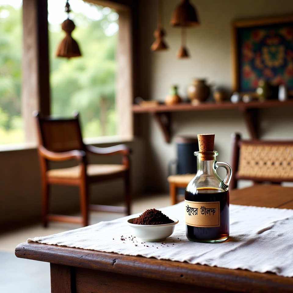 - ডার্ক গ্লাস বোতল – তেল সংরক্ষণে ও আলো থেকে রক্ষা করতে
