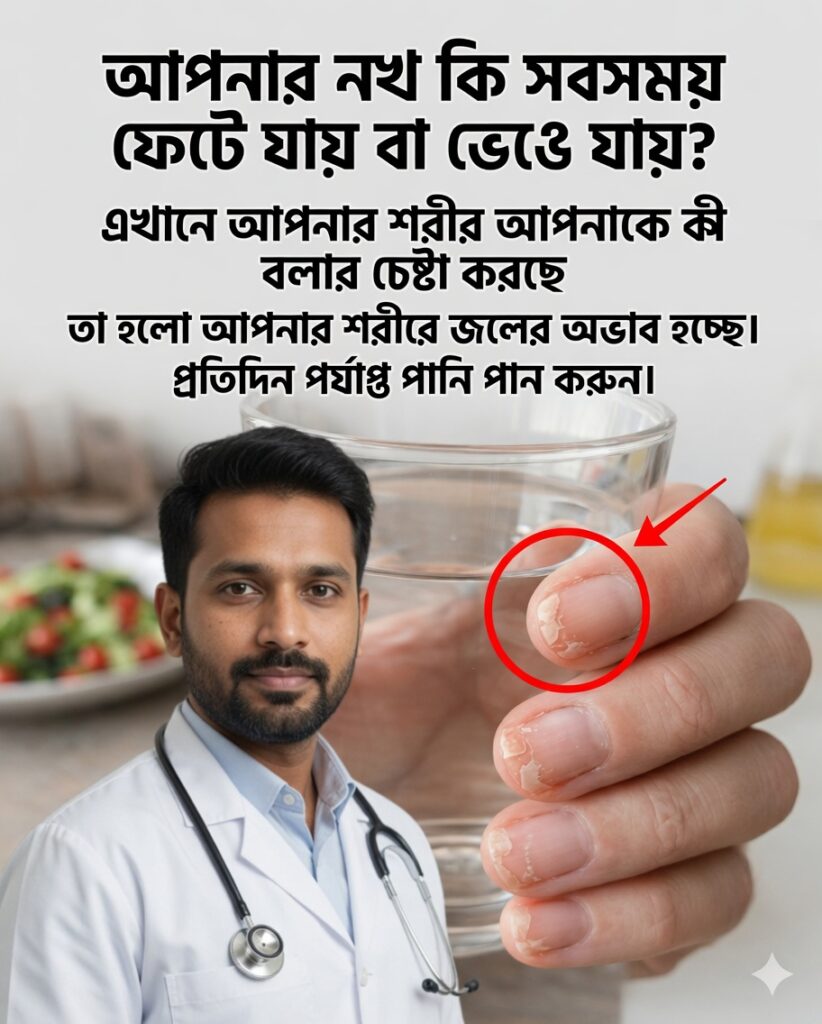পানির অভাবে নখ দ্রুত শুষ্ক ও ভঙ্গুর হয়।