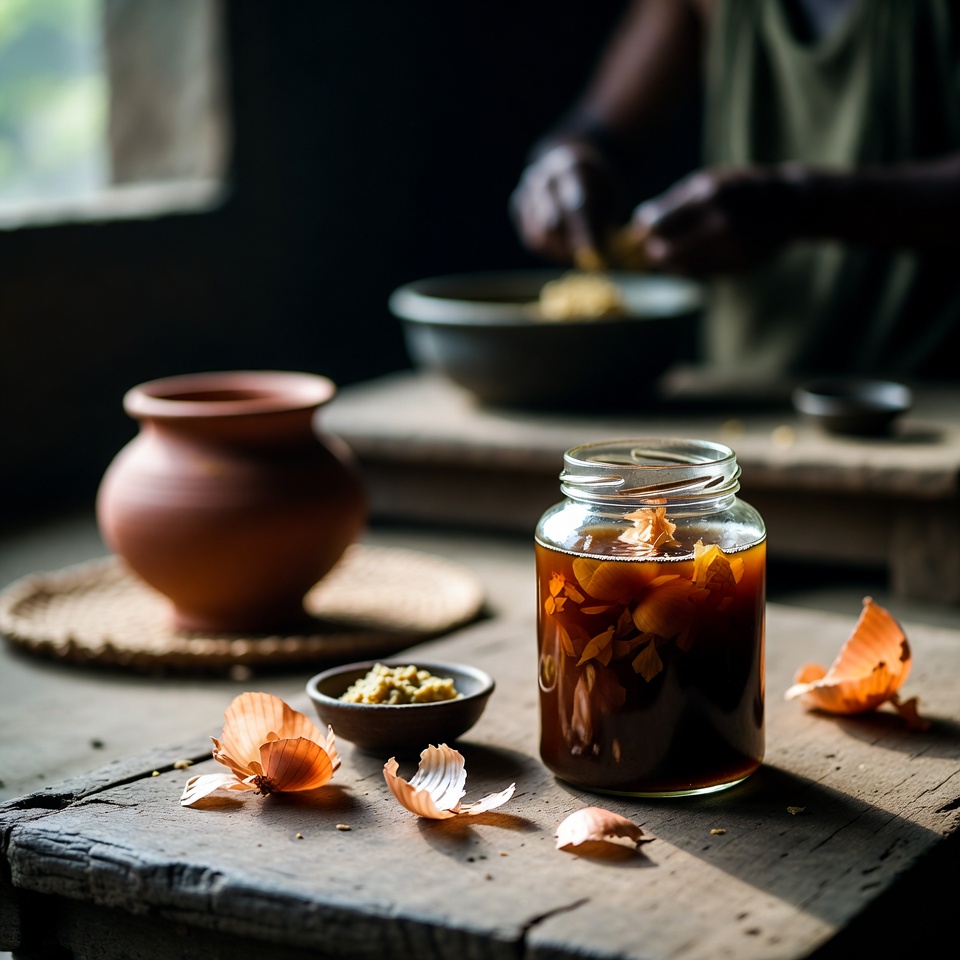 - একটি পাত্রে পানি নিয়ে তাতে পেঁয়াজের খোসা দিন।