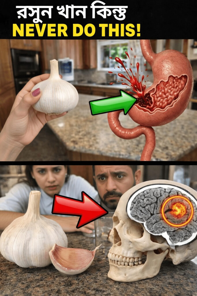 সকালে খালি পেটে কয়েক কোয়া কাঁচা রসুন খাওয়ার অভ্যাস অনেকের আছে। কিন্তু এতে বমিভাব, অ্যাসিডিটি, রিফ্লাক্স বা পেটব্যথার ঝুঁকি বাড়তে পারে। কারণ খালি হজমতন্ত্রে রসুনের শক্তিশালী যৌগগুলো বেশি তীব্রভাবে কাজ করে।