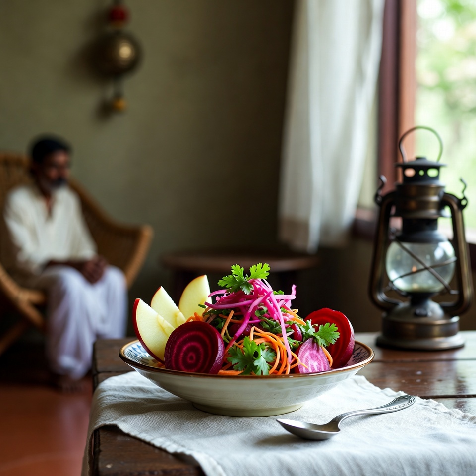 সাধারণ উপকরণ দিয়েই তৈরি এই ঝলমলে রঙের সালাদটি যেমন সুস্বাদু, তেমনি পুষ্টিগুণে ভরপুর। বিটরুটের মাটির মিষ্টি স্বাদ, আপেলের খাস্তা টেক্সচার আর গাজরের প্রাকৃতিক মিষ্টি—সব মিলিয়ে এটি এক দুর্দান্ত হেলদি সালাদ, যা সহজেই আপনার সাপ্তাহিক ডায়েটের অংশ হতে পারে।