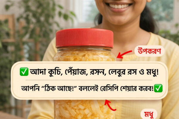 - ১ চা-চামচ আদা কুচি (তাজা আদা কুরানো)
