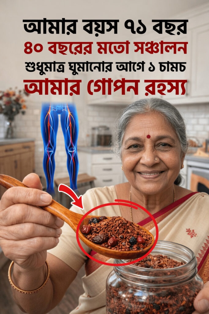 সুখবর হলো, ছোট কিন্তু নিয়মিত কিছু অভ্যাস স্বাভাবিক উপায়ে রক্ত চলাচল ভালো রাখতে সাহায্য করতে পারে। এমনই একটি সহজ পদ্ধতি হলো ঘুমানোর আগে পুষ্টিকর কিছু উপাদানের এক চামচ মিশ্রণ খাওয়া। এটি খুবই কোমল, সহজে মানিয়ে নেওয়া যায়, এবং এমন কিছু খাবারের ওপর ভিত্তি করে তৈরি যা শরীরের সঞ্চালন ব্যবস্থাকে সহায়তা করতে পরিচিত। নিচে জানুন এই মিশ্রণে কী থাকতে পারে, কেন এটি উপকারী হতে পারে, এবং কীভাবে ঘরে বসেই নিরাপদভাবে এটি ব্যবহার করবেন।
