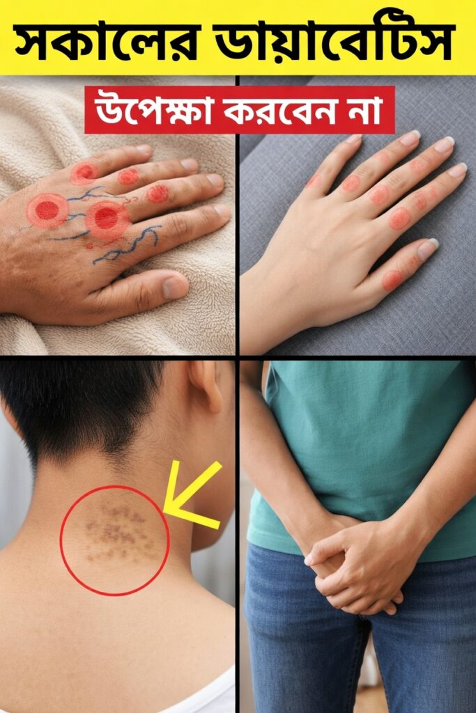 কেউ কেউ ঘুম ভাঙার পর হাত, পা বা আঙুলে হালকা সূঁচ ফোটার মতো অনুভূতি বা অবশতা টের পান। দীর্ঘদিন ধরে রক্তশর্করা নিয়মিতভাবে বেশি থাকলে স্নায়ুতে চাপ পড়তে পারে, আর বিশ্রামের রাতের পর সকালে এ অনুভূতিটা বিশেষভাবে স্পষ্ট হয়।