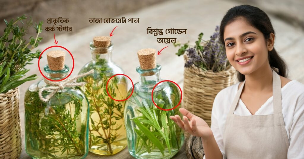 - রোজমেরি পাতা ভালোভাবে ধুয়ে নিন এবং সম্পূর্ণ শুকিয়ে নিন, যেন পানি না থাকে।