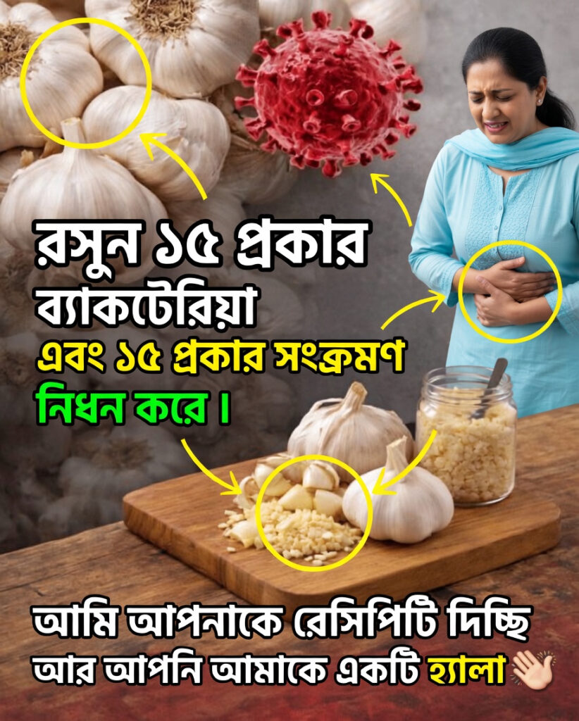 আধুনিক স্বাস্থ্যসমস্যার চাপ যদি আপনিও অনুভব করে থাকেন—আপনি ব্যস্ত কর্মজীবী হন, পরিবার সামলানো একজন অভিভাবক হন, বা বারবার অ্যান্টিবায়োটিকের ওপর নির্ভর করতে ক্লান্ত কেউ হন—তাহলে হয়তো মনে হয়েছে, শরীরের স্বাভাবিক প্রতিরোধশক্তি আগের মতো নেই। কিন্তু যদি প্রাচীনকাল থেকে ব্যবহৃত একটি ঘরোয়া উপাদান, যা আধুনিক গবেষণাতেও আলোচিত, আপনার অদেখা সহায়ক হয়ে উঠতে পারে? এই লেখায় আমরা খতিয়ে দেখব সেই জনপ্রিয় দাবির সত্যতা, যেখানে বলা হয় রসুন “১৪ ধরনের ব্যাকটেরিয়া ও ১৩ ধরনের সংক্রমণ ধ্বংস করতে পারে।” বাস্তব বিজ্ঞান, অনুপ্রেরণাদায়ক অভিজ্ঞতা এবং ব্যবহারিক উপায়—সবই থাকছে এখানে।