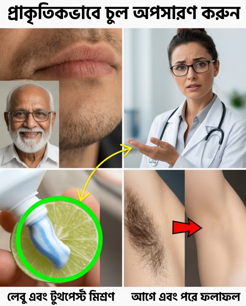 অবাঞ্ছিত লোম, ত্বকের রুক্ষতা বা শেভ করার পর জ্বালা—এগুলো অনেকেরই পরিচিত সমস্যা। আপনি কি জানেন, ৩০ বছরের বেশি বয়সী মানুষের মধ্যে প্রায় ৭৫% অন্তত মাসে একবার মুখ বা শরীরের লোম নিয়ে অস্বস্তি বা অপ্রস্তুত বোধ করেন? এখন কল্পনা করুন—লেবুর রস ও টুথপেস্ট মিশিয়ে ত্বকে লাগালে হালকা শীতল অনুভূতি হচ্ছে, আর ত্বক সাময়িকভাবে আরও নরম ও মসৃণ লাগছে।