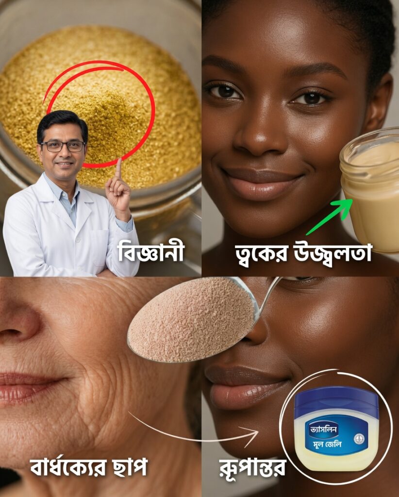 ভ্যাসলিন ত্বকে আর্দ্রতা ধরে রাখতে সাহায্য করে, আর ইস্ট ত্বককে ভেতর থেকে পুষ্টি দিতে সহায়তা করতে পারে।
