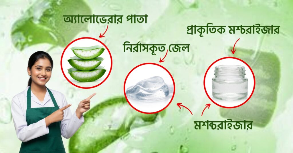 • ১ টেবিল চামচ খাঁটি অ্যালো ভেরা জেল