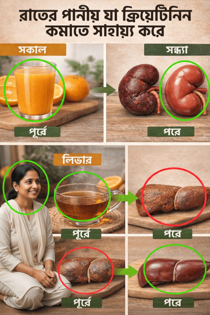 সারাদিন ধরে কিডনি শরীর থেকে বর্জ্য পদার্থ, যেমন ক্রিয়েটিনিন, ছেঁকে বের করে। তাই সন্ধ্যা বা রাতে পর্যাপ্ত তরল গ্রহণ কিডনিকে তুলনামূলক স্বস্তিতে তার কাজ চালিয়ে যেতে সহায়তা করতে পারে। বিভিন্ন গবেষণায় দেখা যায়, নিয়মিত তরল গ্রহণ—বিশেষ করে ভেষজ পানীয়ের মাধ্যমে—শরীরের সামগ্রিক ভারসাম্য ভালো রাখতে ভূমিকা রাখে।