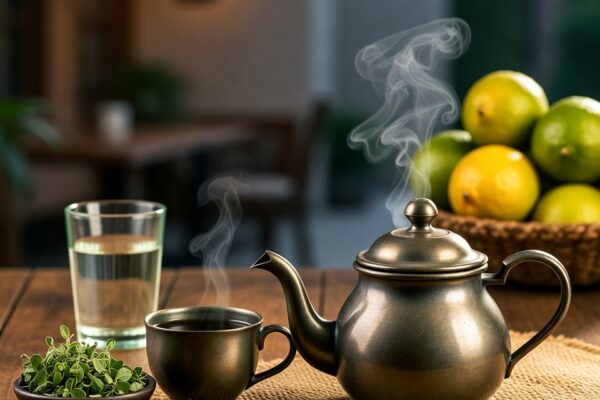 দিনের শুরুতে লেবু মেশানো কুসুম গরম পানি—হাইড্রেশন ও ভিটামিন C–এর মৃদু “বুস্ট”। -