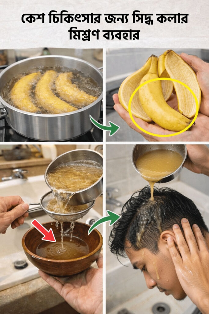সেদ্ধ করা কলার খোসার পানি কীভাবে হেয়ার রিন্স হিসেবে কাজ করে