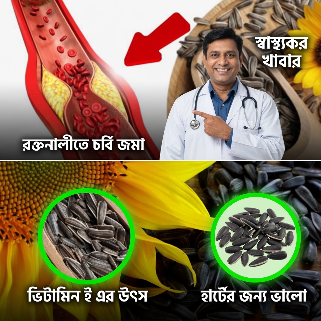 প্রতিদিন সূর্যমুখী বীজ খাওয়া শরীরকে ভেতর থেকে সুরক্ষা দিতে পারে এবং হৃদয় ও রক্তনালির রক্তসঞ্চালন উন্নত করতে সাহায্য করে। এই “কুড়মুড়ে-বাদামি” অভ্যাসটি কার্যকর হওয়ার একটি বড় কারণ হলো—বীজে থাকা ভিটামিন ই ও ফাইটোস্টেরল রক্তে জমে থাকা কোলেস্টেরলের “ঘন” ও “আঠালো” প্রবণতাকে কমাতে সহায়তা করে। ফলে দুর্বল রক্তপ্রবাহের কারণে যে ক্লান্তি বা ভারীভাব আসে, তা কাটাতে এটি একটি সহজ, সাশ্রয়ী এবং প্রাকৃতিক উপায় হতে পারে।