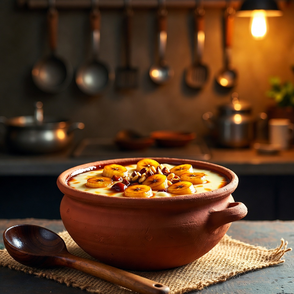 - ঢাকনা লাগিয়ে কম তাপে (low) ২–৩ ঘণ্টা রান্না করুন, যতক্ষণ না কলা নরম হয়ে যায় এবং সসটি ঘন হয়ে আসে।