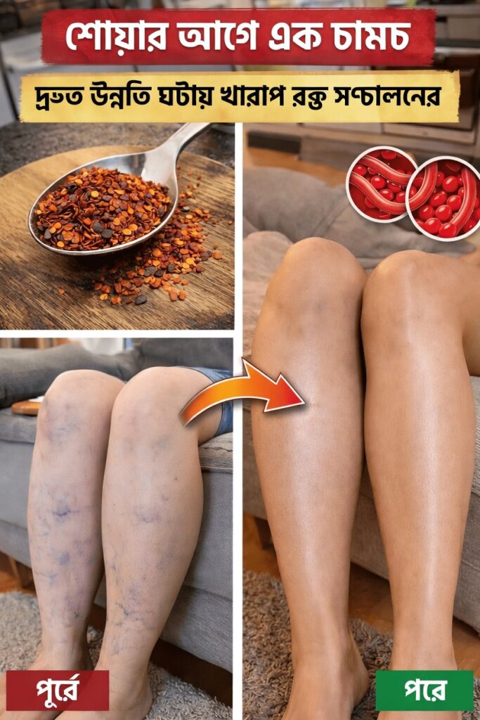 খাবারের মাধ্যমে রক্তনালি ও ভাসকুলার সিস্টেমকে সহায়তা করলে রক্ত সহজে চলাচল করতে পারে, যা পায়ের অস্বস্তি কমাতে এবং সকালে ওঠার সময় কিছুটা হালকা অনুভূতিতে সাহায্য করতে পারে।