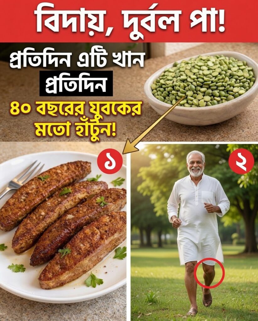 সোফা থেকে উঠতেও কষ্ট হয়… হাঁটুতে কটকট শব্দ, সিঁড়ি ভাঙা যেন কঠিন পরীক্ষা, আর নাতি-নাতনিদের সঙ্গে তাল মেলানো দূরের স্বপ্নের মতো লাগে। ৬০-এর পর পায়ের মাংসপেশি কমে যাওয়া খুবই সাধারণ—এবং এতে দৈনন্দিন ছোট কাজও বড় চ্যালেঞ্জে পরিণত হয়। কিন্তু যদি এমন একটি সহজ, প্রাকৃতিক এবং হাতের নাগালে থাকা সমাধান থাকে, যা এই অবস্থার উন্নতিতে সাহায্য করতে পারে?
