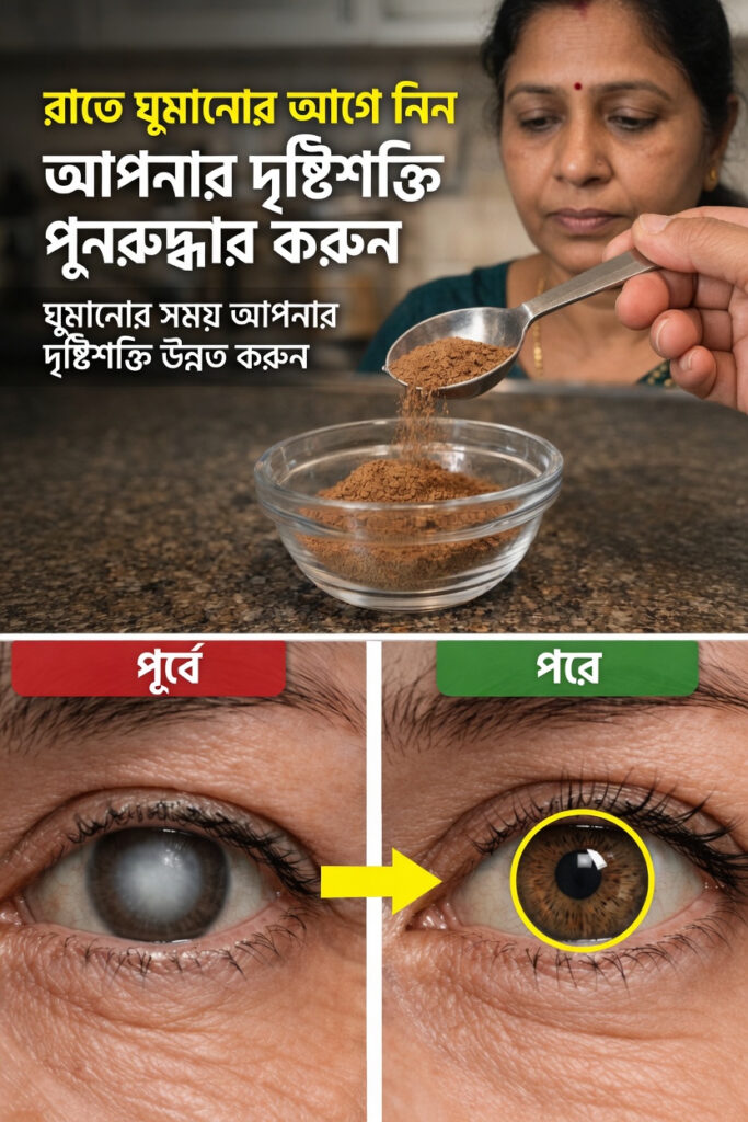 সাম্প্রতিক সময়ে এমন কিছু সহজ রাতের অভ্যাস নিয়ে আগ্রহ বেড়েছে, যা শরীরের বিশ্রামের সময় চোখের স্বাভাবিক সুস্থতাকে কোমলভাবে সহায়তা করতে পারে। বিশেষ করে ৬০ বছরের বেশি বয়সীদের মধ্যে ঘুমের আগে একটি সাধারণ চামচভর্তি উপাদান গ্রহণের প্রবণতা বেশ আলোচনায় এসেছে।