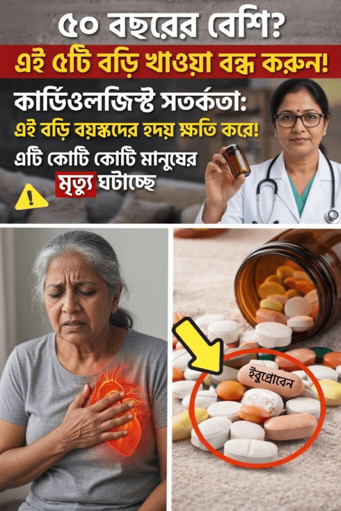 বয়স বাড়ার সঙ্গে সঙ্গে ৬০ বছরের বেশি অনেক মানুষই দৈনন্দিন জয়েন্টের শক্তভাব, মাংসপেশির ব্যথা বা বয়সজনিত অস্বস্তি কমাতে পরিচিত ওভার-দ্য-কাউন্টার ওষুধের দিকে ঝুঁকেন, যেমন আইবুপ্রোফেন। প্রথম দেখায় এটি সহজ সমাধান মনে হলেও, বয়সের সঙ্গে শরীরের প্রতিক্রিয়া বদলে যাওয়ায় বিষয়টি সবসময় এত সরল নাও হতে পারে—বিশেষ করে হৃদ্স্বাস্থ্যের ক্ষেত্রে। তাই এই পর্যায়ে একটু বেশি সচেতন হওয়া গুরুত্বপূর্ণ। কারণ, প্রতিদিনের ছোট অভ্যাসও দীর্ঘমেয়াদে স্বস্তি, শক্তি ও সামগ্রিক সুস্থতায় অপ্রত্যাশিত প্রভাব ফেলতে পারে। সুখবর হলো, সঠিক তথ্য জানলে আপনি দ্রুত কিছু বাস্তবধর্মী পদক্ষেপ নিতে পারেন, যা আপনার চিকিৎসকের সঙ্গে আলোচনা করে জীবনযাত্রায় অন্তর্ভুক্ত করা সম্ভব।