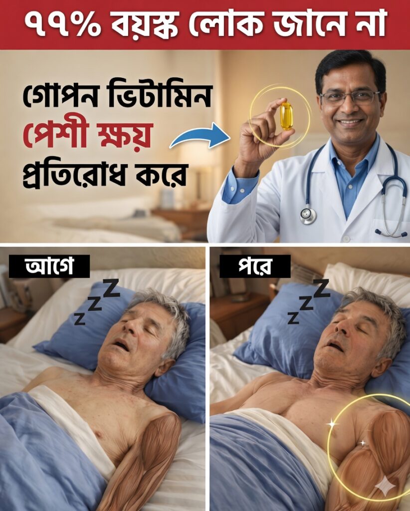 ভিটামিন ডি পেশিশক্তি ও ফাংশনের জন্য অত্যন্ত দরকারি। কম মাত্রা থাকলে দুর্বলতা এবং পড়ে যাওয়ার ঝুঁকি বাড়তে পারে।